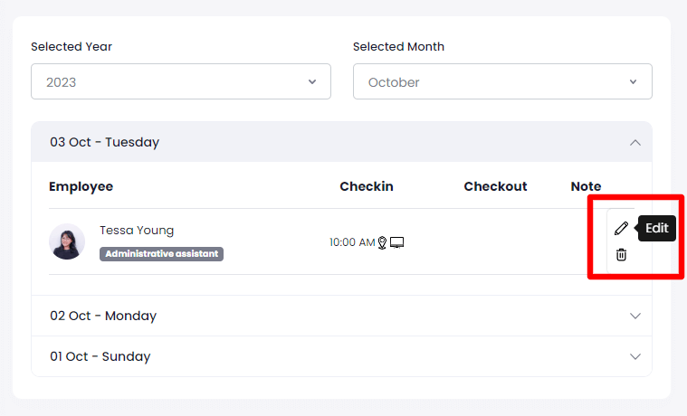 You can edit the attendance by tapping on the edit icon from the attendance list.