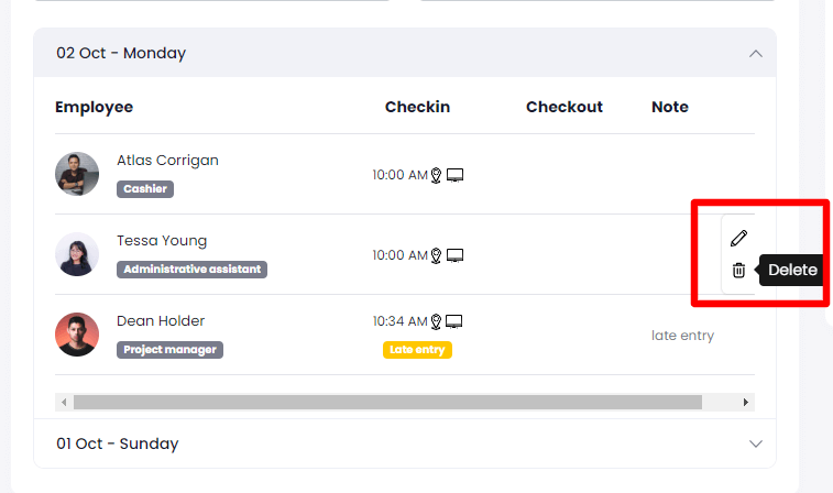 You can delete the attendance anytime by clicking on the delete icon from the list.