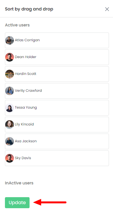 Drag and drop the user list to short. Then click on the "Update" button to save the shorting.