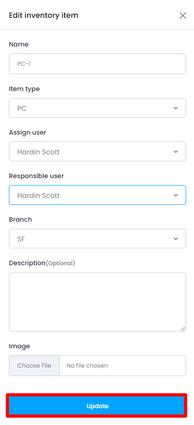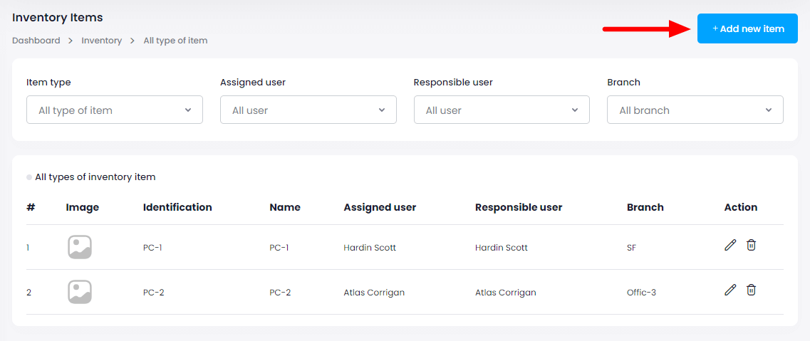 Here you can view the inventory item list. You can also add a new item to the list by clicking on the "Add new item" button from the right side.