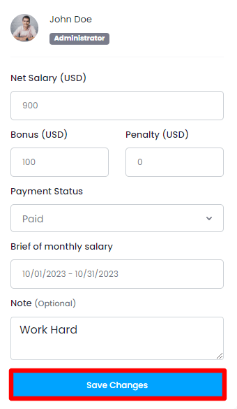 Modify the information and click on the "Save Changes" button to save the changes.