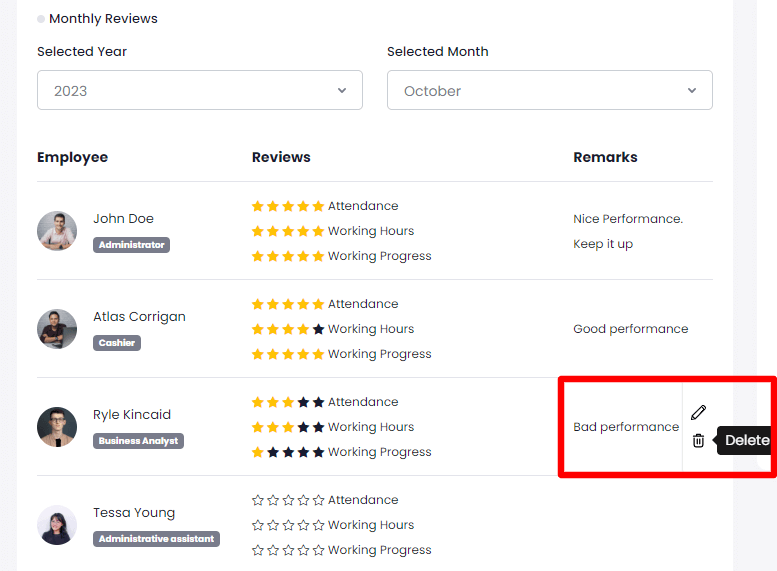 Select the star you want to give and write down a remark then click on the "Submit" button.
