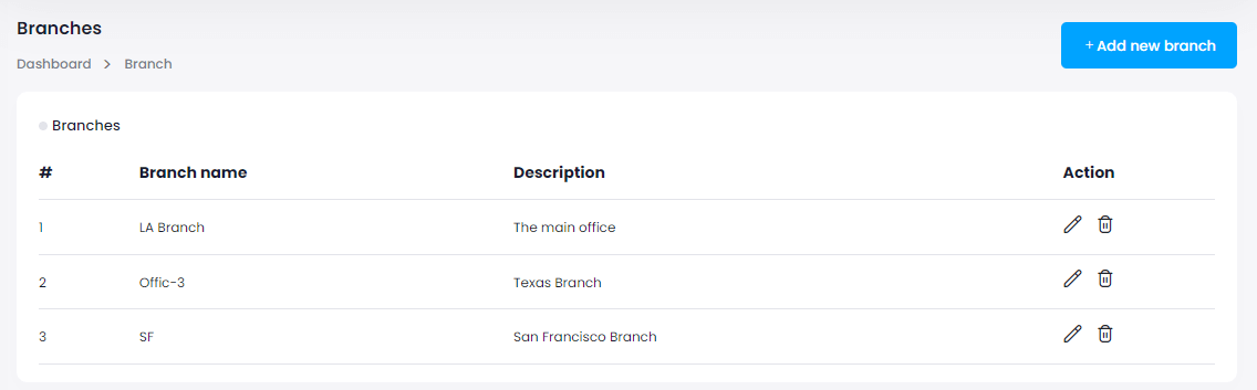In this section, you can add your office branches. As an admin, you can modify the branch information anytime from the admin panel.