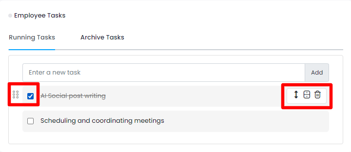 Your users can mark the tasks as complete, rearrange the task, expand it, archive, and delete the task anytime by tapping on the icons from the created task.